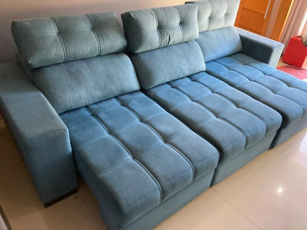 Depois de seco, o sofá pode ser usado por crianças e pets com tranquilidade. Sem resíduo, sem cheiro forte.